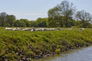 Das Ufer ist meistens von vielen Böschungen und Bäumen gesäumt. Viele Wildvögel wie Reiher, Enten, Eisvögel und viele weitere Vogelarten haben sich hier niedergelassen.