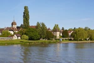 Die Fahrt von Scey-sur-Saône nach Süden in Richtung Auxonne ist etwas lebendiger, aber trotzdem von Ruhe, Natur und kleinen Ortschaften geprägt. Die nächstgelegene Ortschaft nach dem Tunnel St. Albin ist Ray-sur-Saône. Ein kleines Highlight auf der Fahrtstrecke. Die Ortschaft ist das malerische Fotomotiv schlechthin! Über den Häusern und der wunderschönen Kirche mit den bunten, glasierten Dachziegeln ragt ein Schloss aus dem 10. Jahrhundert. Von hier oben haben Sie einen tollen Blick auf das Saône-Tal. Ein schöner Park lädt zum Verweilen ein. Nach ca. 5h Fahrt durch eine idyllische Flusslandschaft erreicht man die Stadt Gray.