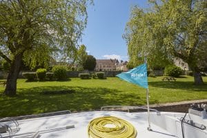 Allgemein ist es jedem Hausbootfahrer zu empfehlen, vor dem Ablegen einen Grundvorrat an Lebensmitteln einzukaufen. Natürlich am besten entsprechend des regionalen Angebots. Man möchte doch auch gerne die Küche des Burgunds stilecht genießen. Im Ort Scey-sur-Saône gibt es alles für den ersten Bedarf an Bord. Darunter Geschäfte für Lebensmittel, Bäckereien, Metzger und natürlich auch Cafés und Restaurants. Sehenswert sind hier die alten spanischen Häuser und die Kirche Saint Martin. Im Restaurant „Les deux ports“ nahe dem Abfahrtshafen gibt es gutes und preiswertes Essen. In Richtung Norden erreicht man nach ca. 1,45h Fahrt die Ortschaft Port-sur-Saône. Einst ein geschäftiger Hafen, heute eher stiller gelegen. Man kann nur noch an der präsenten Architektur erkennen, dass dieser Hafen einst für die Schifffahrt sehr wichtig war. Neben dem Hafen gibt es einen schönen Park, der zum Verweilen und zur Beobachtung von Rehen einlädt. Im Ortskern selbst findet man die Kirche St. Etienne, das ehemalige Kloster Cluny und eine schöne Brücke, die sich über die gesamte Saône erstreckt. Es folgen auf dem Weg in Richtung Corre drei weitere kleiner Ortschaften. In allen drei ist die Kirche immer einen Besuch wert. In Conflandey gibt es zusätzlich mitten im Fluss auch eine schön gelegene Insel mit einem schönen Schloss in der Mitte. Elegant umschippert der Freizeitkapitän das attraktive Fotomodell. Nach einer gemächlichen und naturnahen Tour, die 1-2 Tage in Anspruch nimmt, wird der Ort Corres erreicht. Hier sollten Sie, wenn Sie eine Weiterfahrt planen die Gelegenheit nutzen und sich noch mit Lebensmitteln eindecken. Danach gibt es nur noch wenige Einkaufsmöglichkeiten.