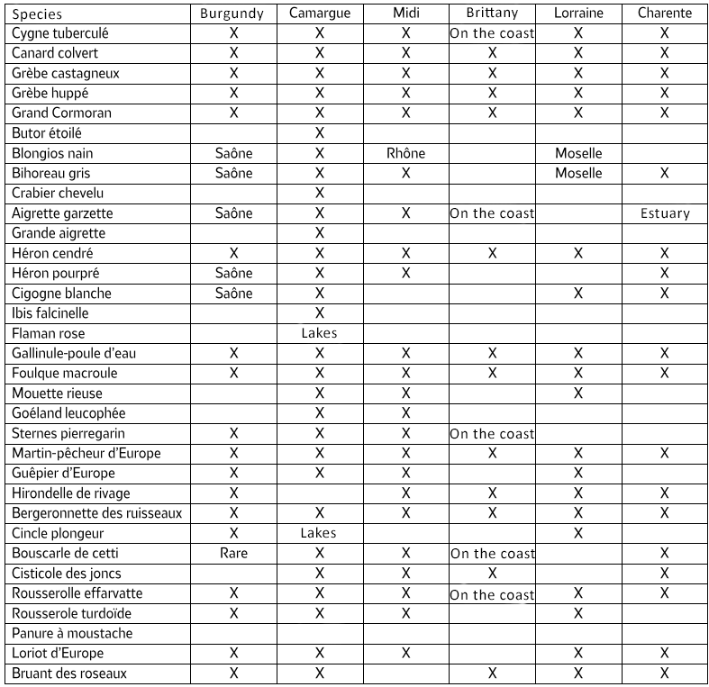 Here is a non-exhaustive list of birds that can be seen near the canals during the breeding season: